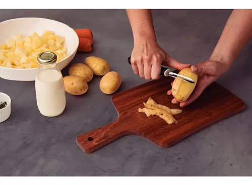 O cabo ergonômico em polipropileno preto oferece firmeza e segurança durante o uso, além de combinar com qualquer estilo de cozinha — do clássico ao moderno. Ideal para descascar batatas, cenouras, pepinos, abobrinhas, maçãs e muito mais, ele é leve, funcional e fácil de limpar.