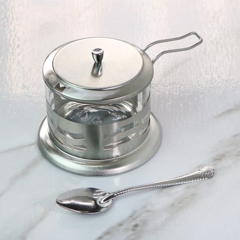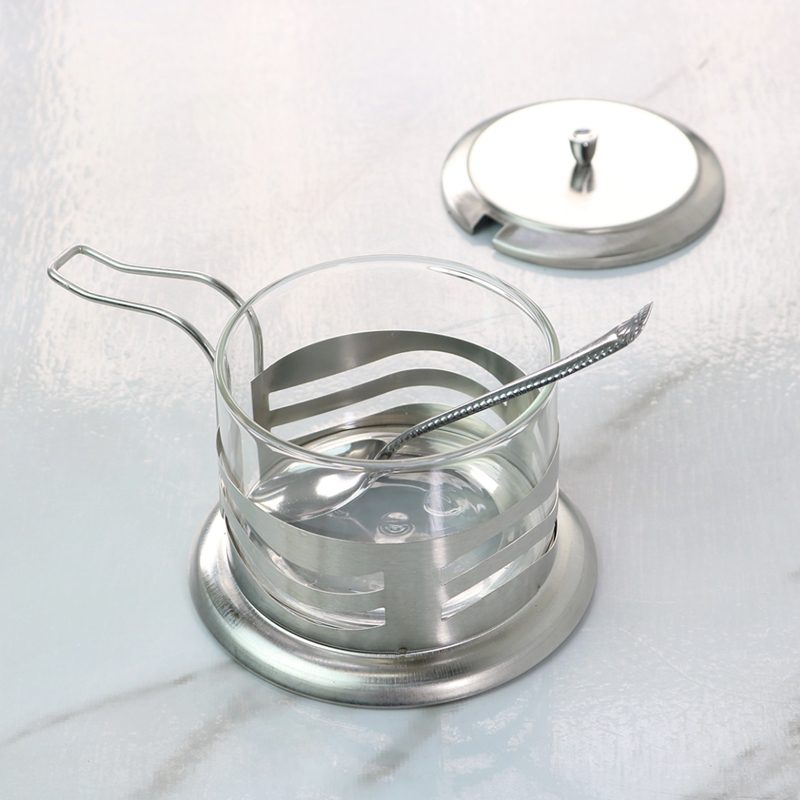 - Material: Vidro + Aço Inox + colher em inox