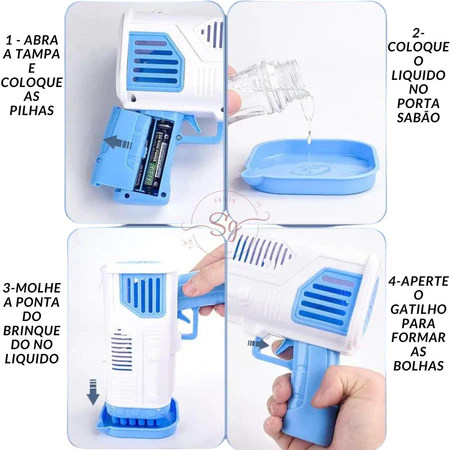 Descrição: Transforme momentos comuns em verdadeiras festas de bolhas com a Bazuka Lança Bolhas de Sabão. Este brinquedo encantador é perfeito para crianças a partir de 4 anos, proporcionando horas de entretenimento tanto em ambientes internos quanto externos.